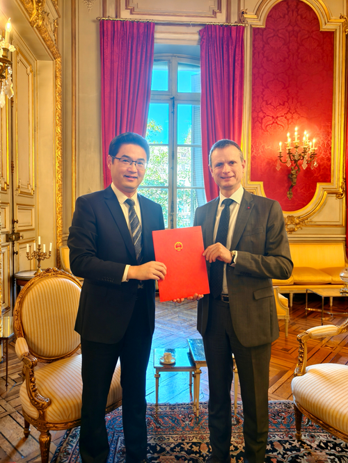 驻马赛总领事何有麟会见普阿蓝大区行政长官兼法国南部战区最高指挥官